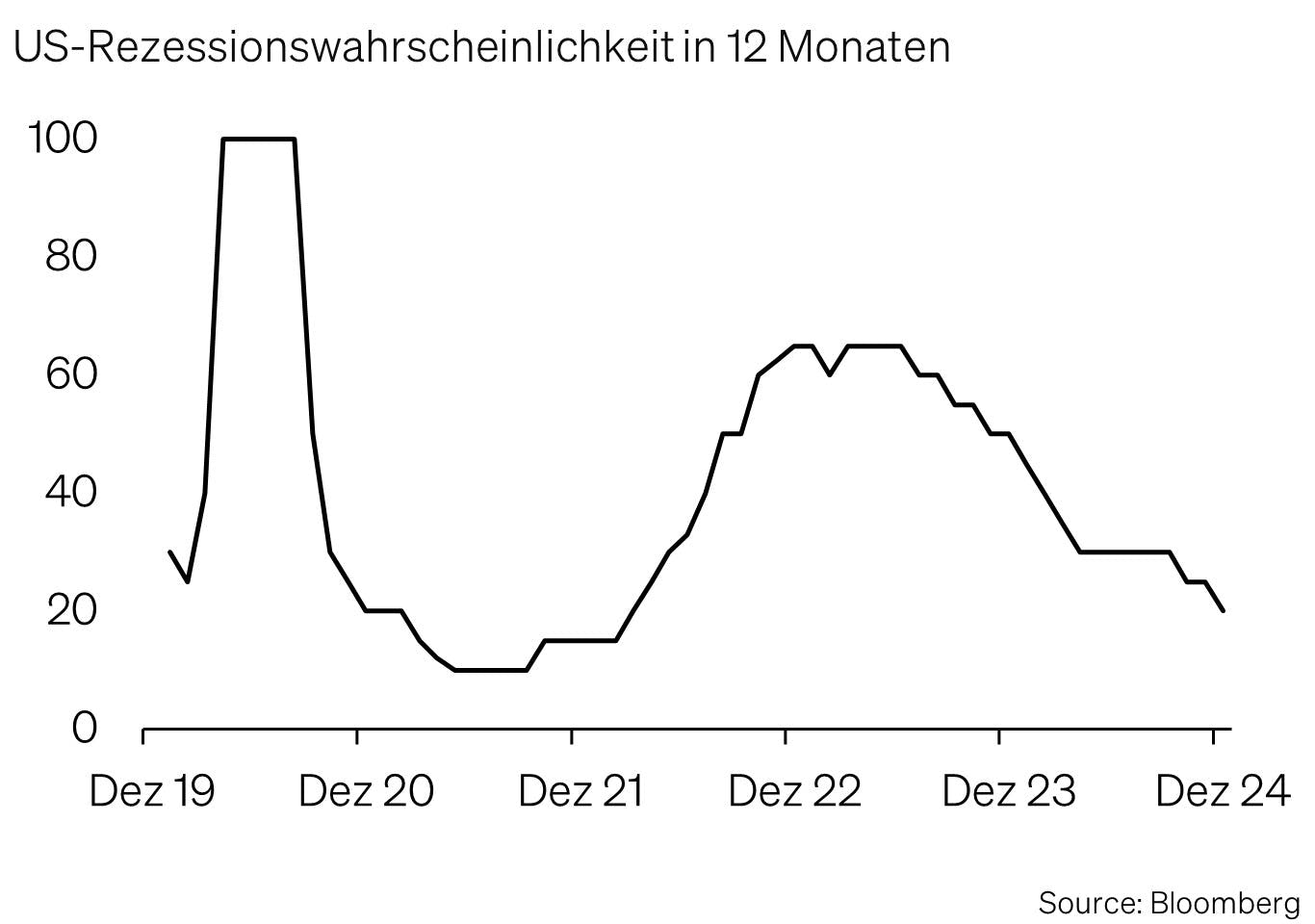 Die Wahrscheinlichkeit einer US-Rezession, die zu Jahresbeginn noch bei 50% lag, sank bis zum Jahresende auf nur noch 20%. Parallel dazu nahm der Inflationsdruck weiter ab und verlief dabei grösstenteils im Einklang mit den Erwartungen.