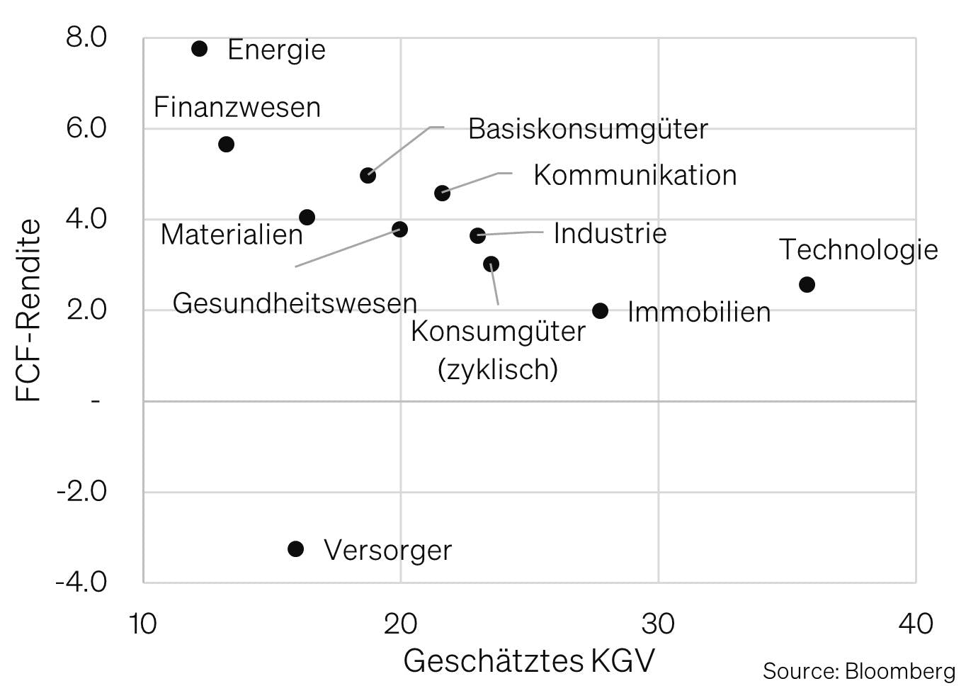 Wie bei den Anleihen lohnt sich jedoch ein Blick auf die regionalen Unterschiede: Während der US-Aktienmarkt als teuer bewertet gilt und sich einem attraktiven Anleihenmarkt gegenübersieht, ist der Schweizer Aktienmarkt durchschnittlich bewertet und steht einem nahezu renditelosen Anleihenmarkt gegenüber.