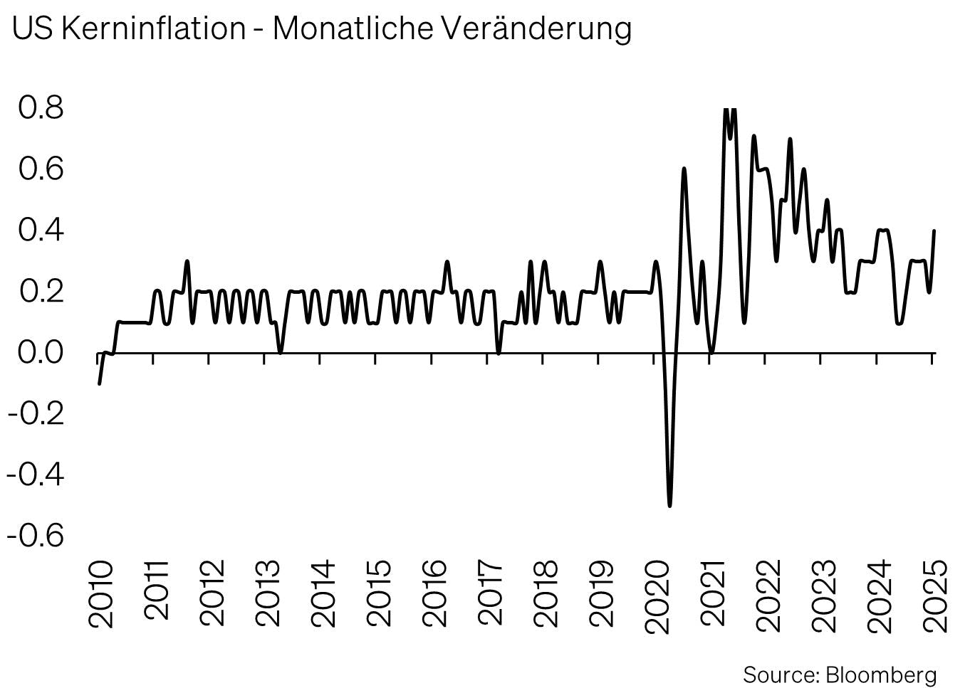 Noch zu Jahresbeginn wurde mit der nächsten Zinssenkung im Juni gerechnet. Der Zeitpunkt verschiebt sich nun zunehmend in den Herbst. Es gibt jedoch auch erste Anzeichen für eine Abschwächung der US-Wirtschaft, insbesondere im Einzelhandel. Die Umsätze im Januar gingen um 0,9% zurück – ein deutlich stärkerer Einbruch als erwartet. Der Rückgang folgt auf ein aussergewöhnlich starkes Weihnachtsgeschäft im Dezember. Die in diesem Jahr drohenden Importzölle könnten gemäss Experten einen erheblichen Einfluss auf die Konsumenten gehabt haben. Die Handelspolitik bleibt damit ein Unsicherheitsfaktor, da neue Zölle langfristig die Kosten für US-Verbraucher und Unternehmen in die Höhe treiben und damit den Spielraum der Fed weiter einschränken könnten.