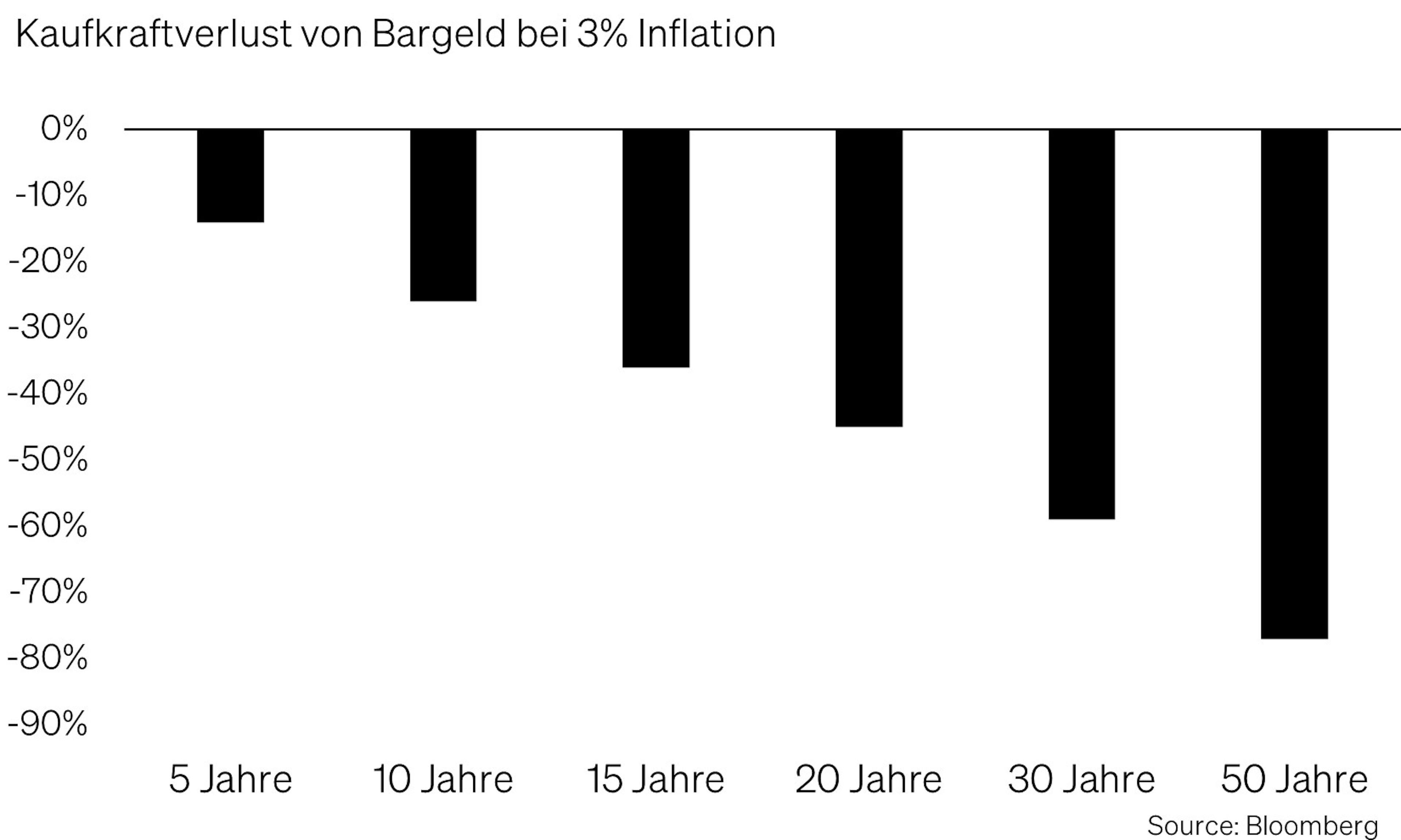 Seit der geldpolitischen Normalisierung zeigt sich das klar: In den USA liegt die durchschnittliche Inflation bei rund 3,0 % statt 1,5 % zwischen 2008 und 2020, in Europa bei etwa 2,1 % statt 1,2 %. Für Anleger entscheidend ist die Unterscheidung zwischen Inflationsrate und Preisniveau: Sinkende Inflation bedeutet nicht sinkende Preise. Auch 3 % Inflation kosten über 15 Jahre rund ein Drittel Kaufkraft. Das verschärft die Belastung für Haushalte – besonders in den USA – und macht Bargeld strukturell unattraktiv.