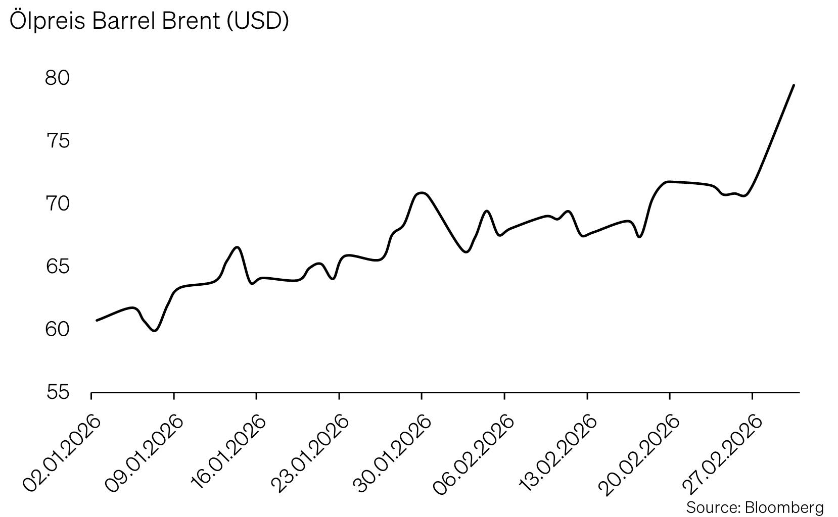 Im Zentrum steht die Strasse von Hormus – eine der wichtigsten Energietransitrouten der Welt. Rund ein Fünftel des globalen Öl- und LNG-Handels passiert dieses Nadelöhr. Bereits partielle Störungen könnten zusätzliche Risikoaufschläge verursachen. Eine längerfristige Blockade hätte hingegen spürbare globale Folgen. Gleichzeitig befindet sich der Ölmarkt derzeit nicht in einer strukturellen Unterversorgung. Solange Transportwege offen bleiben, könnten Preisspitzen daher begrenzt bleiben.