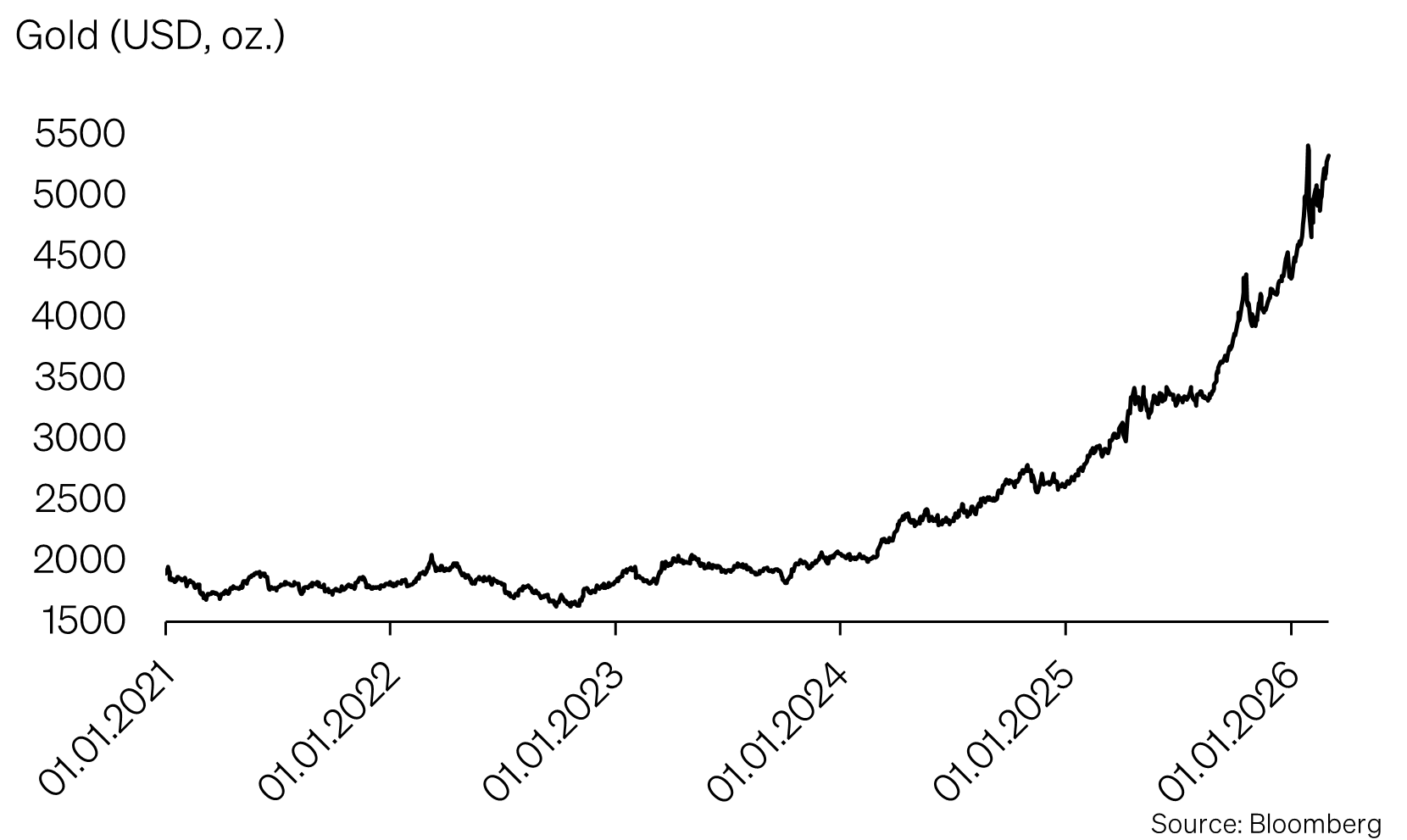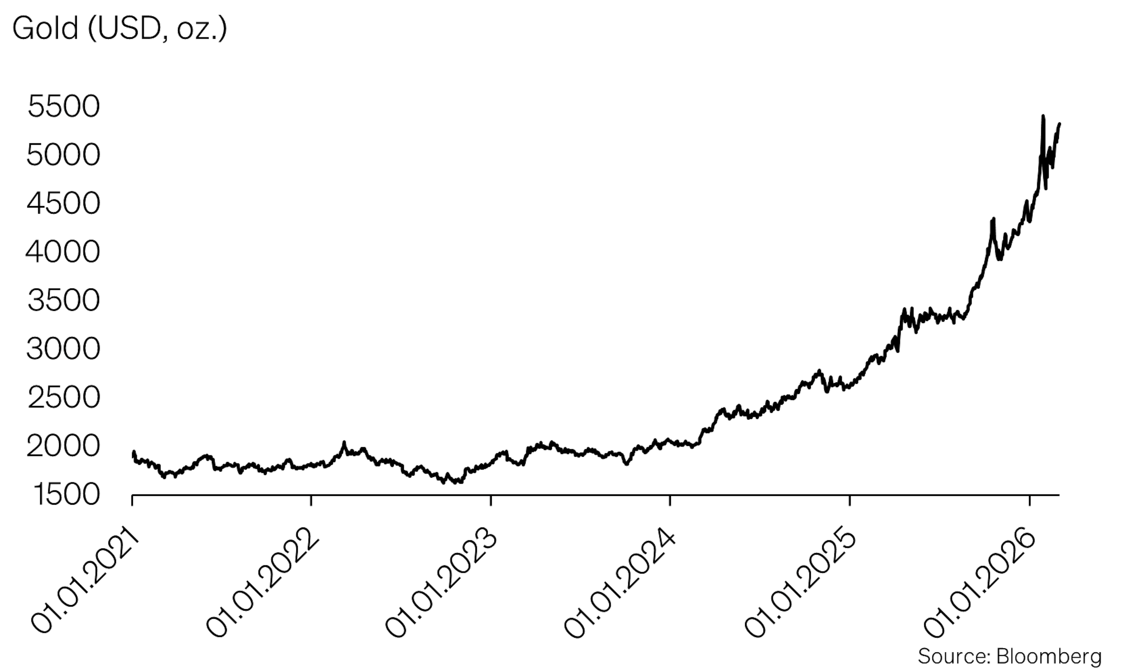 Gold verzeichnete zu Jahresbeginn einen kräftigen Anstieg von zeitweise rund 30 %, gefolgt von einer Korrektur von etwa 22 %. Noch ausgeprägter war die Bewegung bei Silber, das innerhalb weniger Handelstage zwischenzeitlich fast 50 % verlor – ein historisch aussergewöhnlicher Ausschlag in dieser Geschwindigkeit.