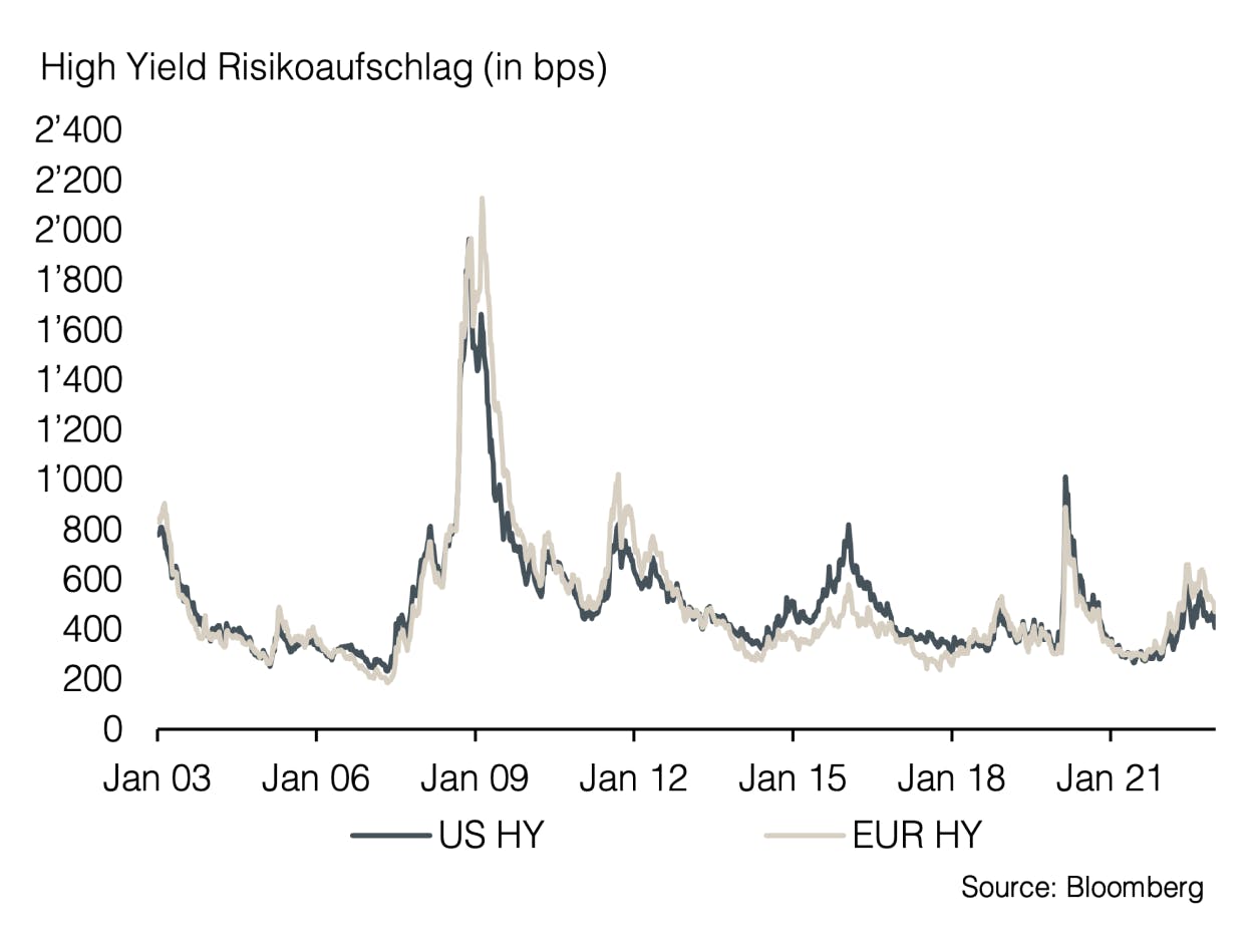 Auch in Bezug auf die Inflation divergieren die Erwartungen. Die US-Notenbank sieht über das kommende Jahr eine Teuerung von 3,1%, während der Markt von 2,0% ausgeht. Auch wenn die Inflation rückläufig und weniger problematisch ausfällt, wird sie den weiteren Jahresverlauf der Märkte bestimmen. Ein Grund zur Vorsicht: Falls die Marktteilnehmer richtig liegen, ist die Inflation unter Kontrolle und tiefere Zinsen sind im Markt bereits eingepreist. Eine euphorische Reaktion auf eine Kursänderung der Fed ist daher unwahrscheinlich. Anders sieht es aus, wenn sich die Erwartung der Notenbank bewahrheitet: Werden die Zinsen 2023 stärker als erwartet steigen, könnte dies vorübergehend zu hoher Volatilität und Verwerfungen an den Märkten führen.