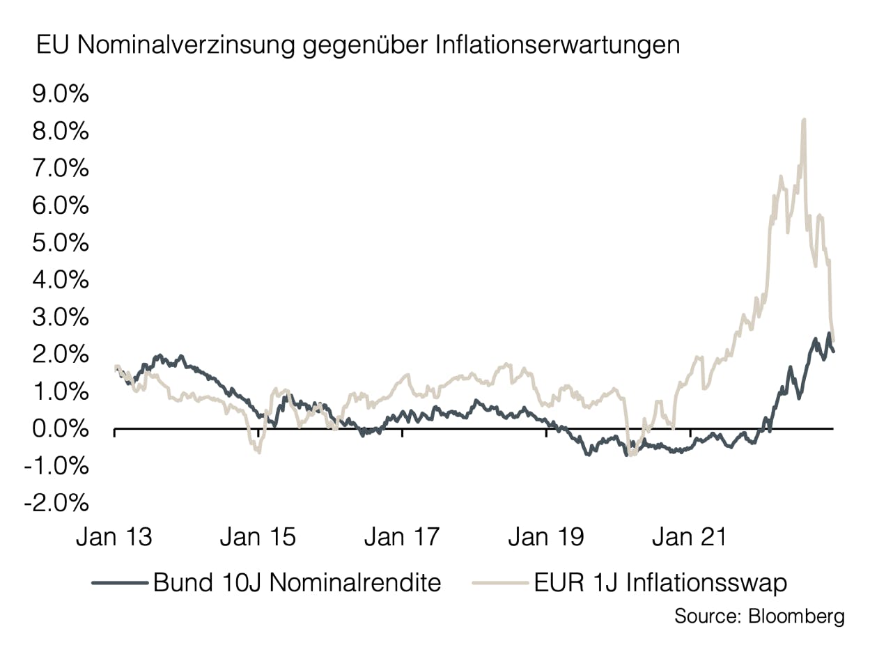 Die aktuelle Situation ist aber nur bedingt mit dem Jahr 2019 vergleichbar, da es damals keine Anzeichen von Inflation gab. Trotzdem gibt es Parallelen. Der Markt sieht die steigende Gefahr einer Rezession und erwartet trotz inflationärem Umfeld, dass die Währungshüter der Wirtschaft erneut zur Hilfe eilen dürften. Somit liegen im Jahr 2023 entweder die Notenbanken oder die Marktteilnehmer falsch. Welche Erwartungen sich bewahrheiten, hängt wahrscheinlich von dem weiteren Verlauf der Inflation ab.