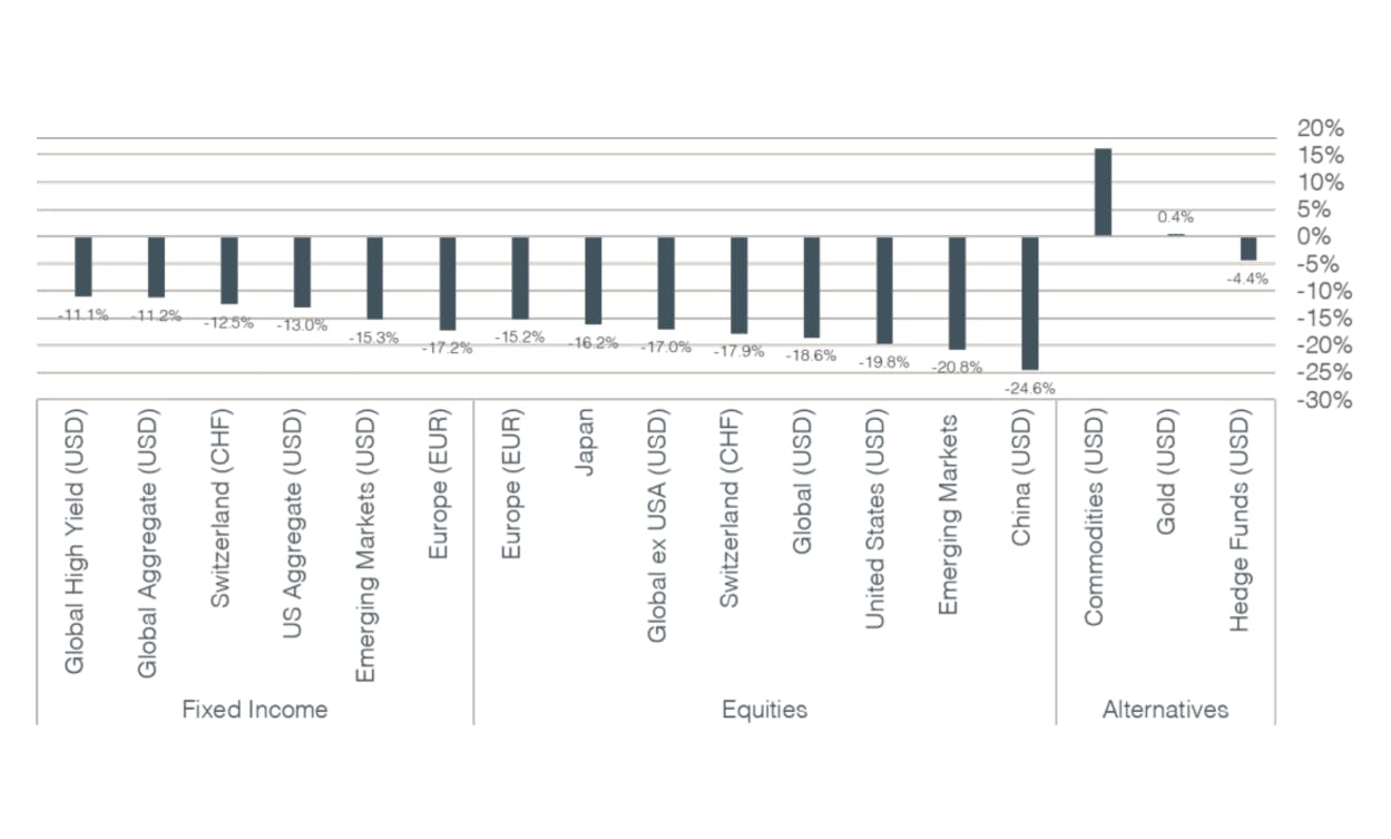 Except for some areas of the commodity market, all asset classes were negatively affected by sharply higher rates caused by central bank tightening. From an investor's point of view, there were almost no possibilities to minimize losses, despite solid diversification.