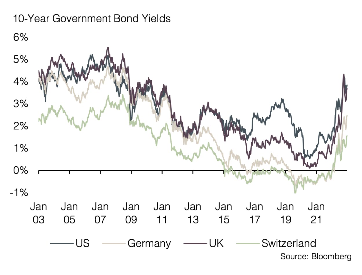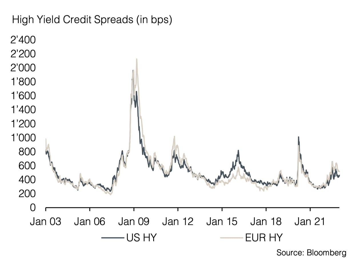 Another positive factor for the bond market is the relatively low refinancing needs globally. This means few companies will be forced to raise money at higher interest rates, particularly in the high-yield segment, which helps explain why high-yield credit spreads remain low despite a gloomy outlook. We maintain an overweight in USD and GBP bonds and a neutral weighting in CHF and EUR bonds for the current year. We will use new highs in European interest rates to gradually extend maturities of high-quality borrowers.
