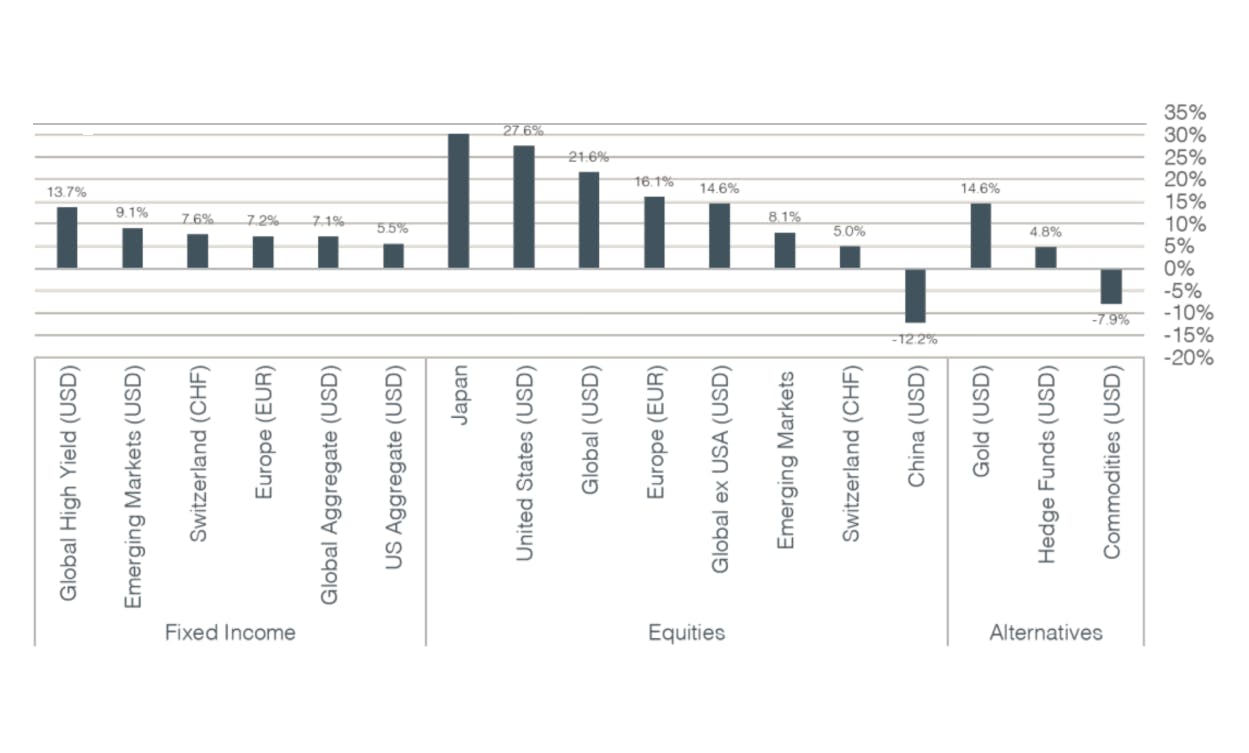 In this more comprehensive edition of Sound Invest, we take a retrospective look at the year 2023 and highlight the returns of the major investment categories. In the second part, we discuss risks and opportunities in the investment year 2024 and explain our corresponding positioning.