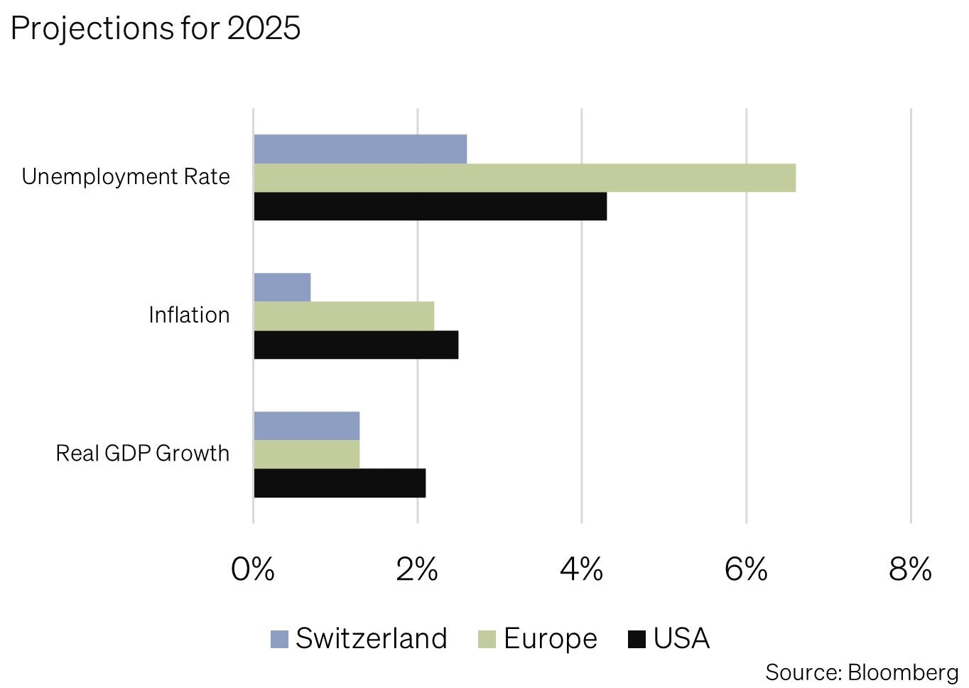 Switzerland remains attractive for equity investors, thanks to low interest rates and strong corporate fundamentals. In 2025, high-quality stocks with robust dividends will likely remain top of mind for CHF-based investors, adding further support to the Swiss market.