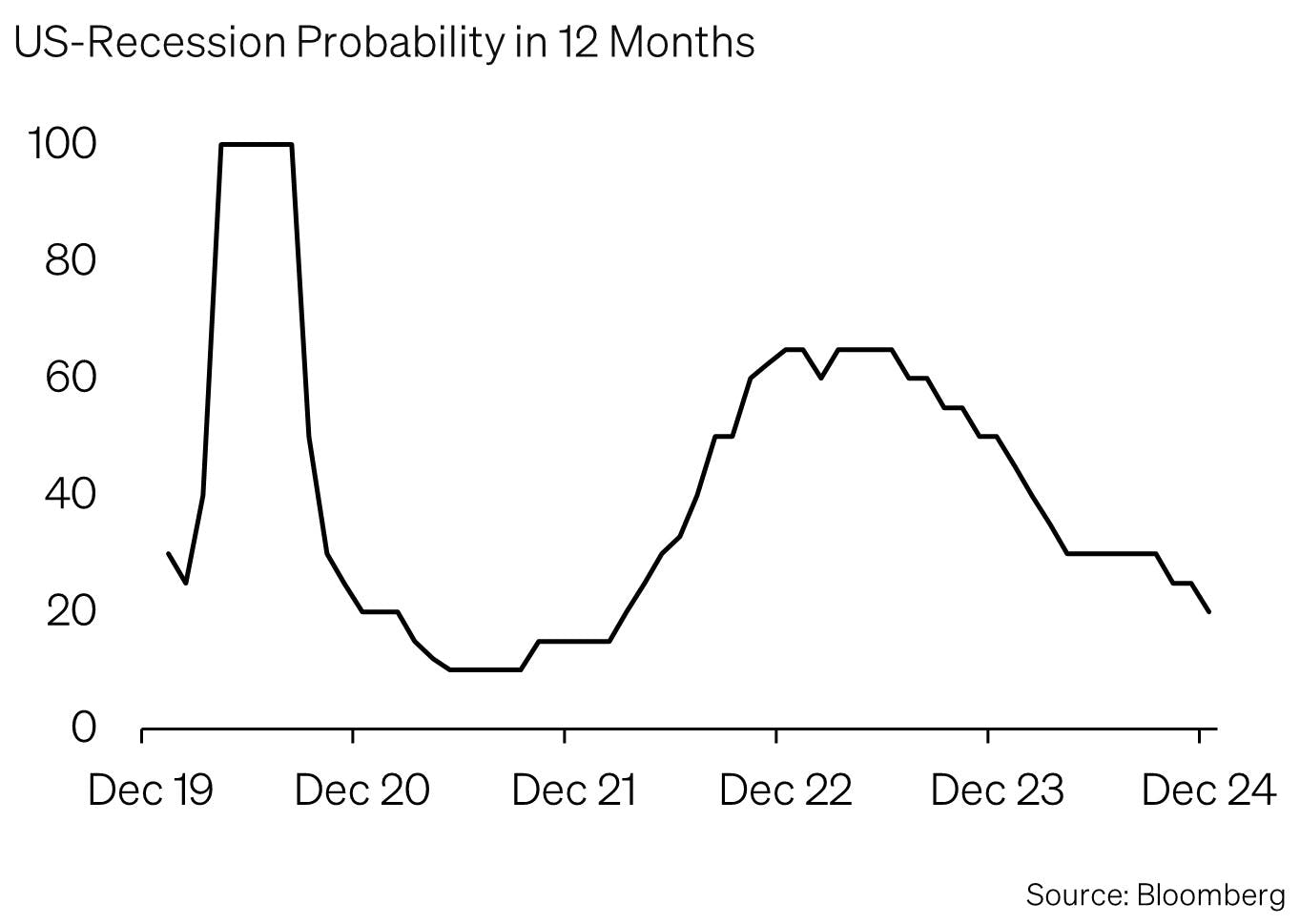 Meanwhile, the probability of a U.S. recession, at 50% at the start of the year, dropped to just 20% by year-end. In parallel, inflationary pressures continued to ease, largely in line with expectations.