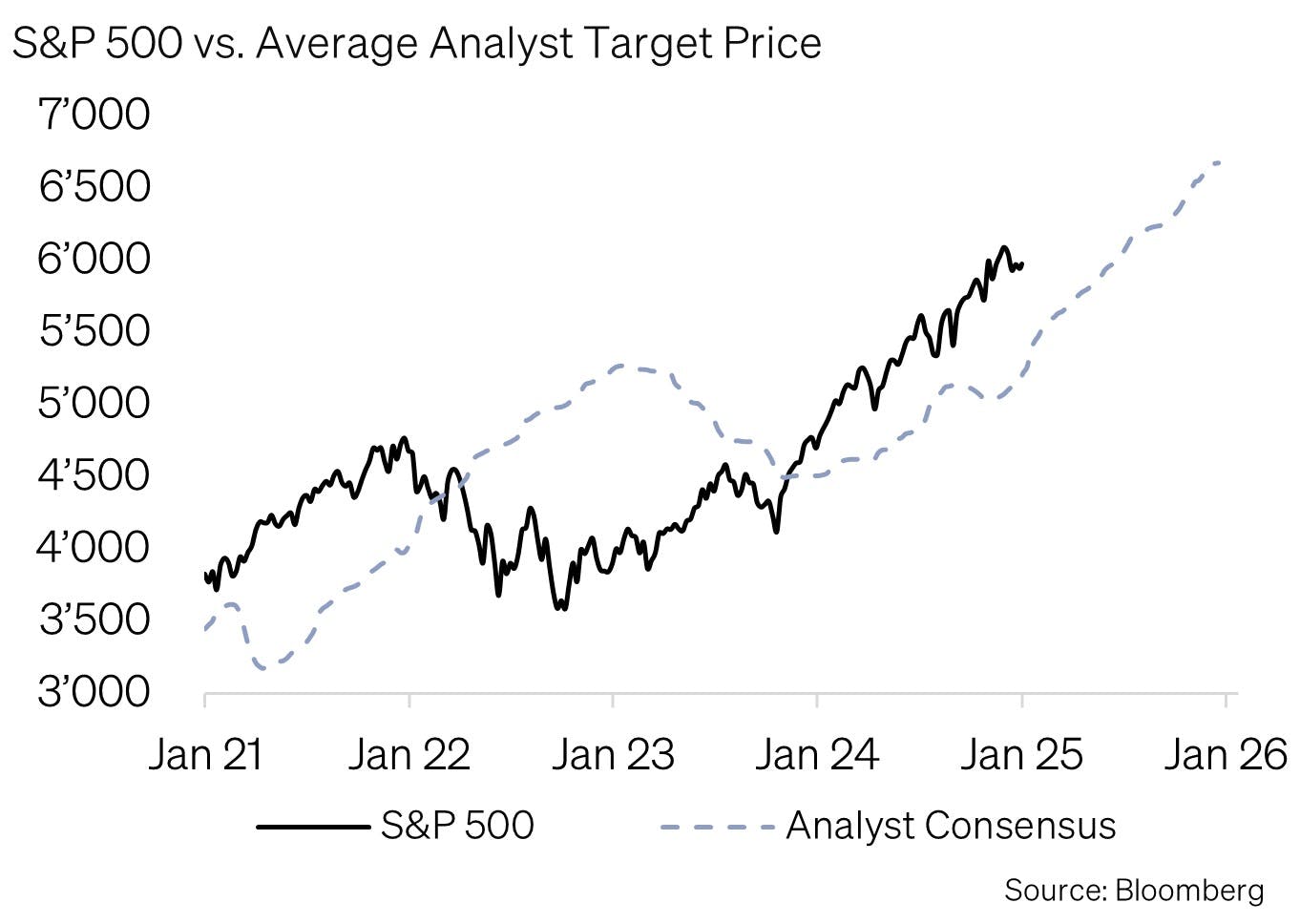 The year 2024 once again brought major surprises to global equity markets, especially in the United States. At the end of 2023, many analysts adopted a cautious stance in their forecasts, following a remarkable stock market performance with gains exceeding 25%. The consensus prediction for the S&P 500 stood at an average of 4,584 points. Yet, the index closed 2024 at nearly 5,900 points, posting another gain of over 25% and surpassing even the boldest expectations.