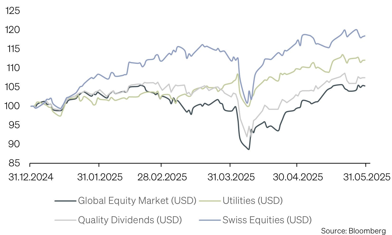 With continued uncertainty surrounding tariffs, the 9 July deadline, and erratic shifts in trade policy, further market disruptions and heightened equity market volatility appear likely. A cautious positioning strategy is therefore recommended.