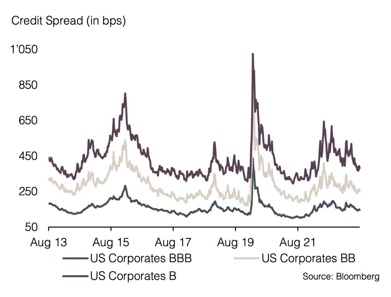 Historically, such comparable housing market situations have been accompanied by a weakening economy. Therefore, we are sticking to our strategic focus and using the higher interest rates to lock in attractive yields for the longer term. Our emphasis remains on high-quality corporate bonds and government bonds. We continue to underweight equities. Within equities, we now consider the healthcare sector as attractive due to its defensive characteristics and solid growth prospects.