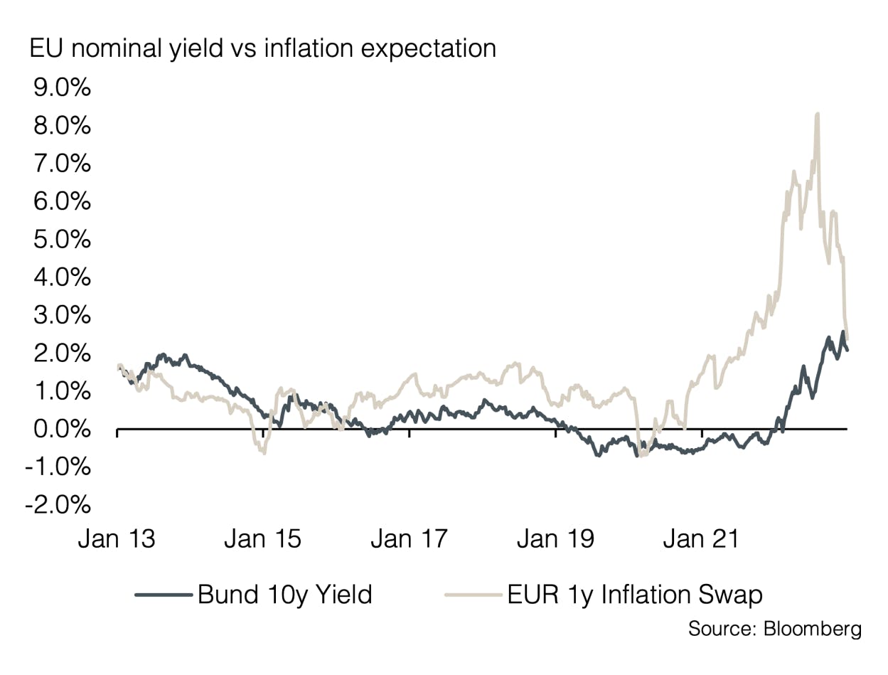 However, the current situation is only partially comparable to 2019, as there were no signs of inflation back then. Nevertheless, there are parallels. The market sees the growing danger of a recession and, despite the inflationary environment, expects monetary authorities to try and rescue the economy once again. Thus, in 2023, either the central banks or the market participants will be wrong. Which expectations come true will probably depend on the further development of inflation.