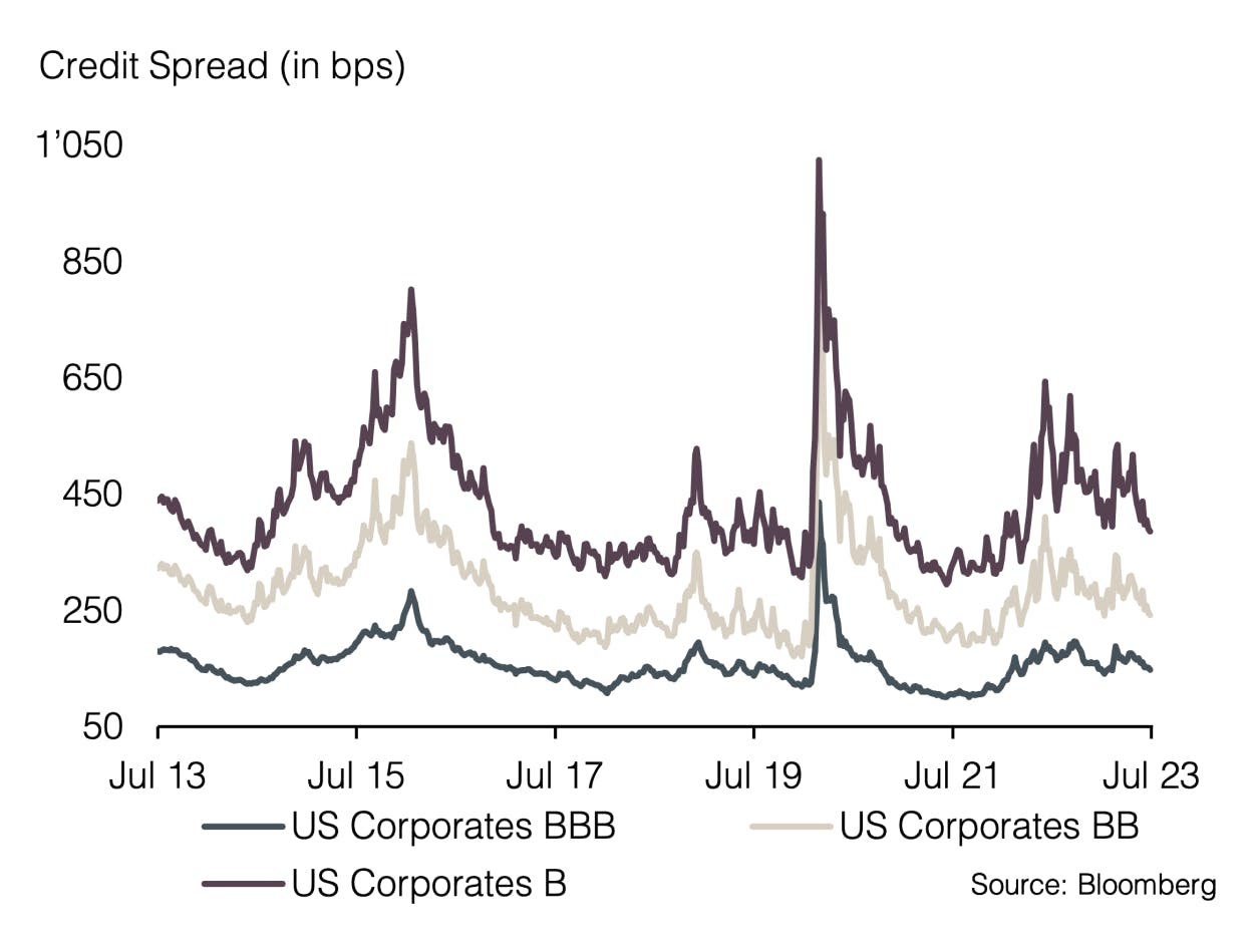 While these effects may impact the economy with a delay, we concur with Bloomberg economists that the macroeconomic environment is poised for negative developments in the coming months. As a result, adopting a cautious positioning is prudent, and the prevailing low volatility in the stock market presents a favorable opportunity for implementing hedging strategies. Our investment approach retains a neutral allocation to bonds while maintaining an underweight position in the equity space. Given the increasing visibility on inflation and short-term interest rates, we are seizing the moment to reduce alternative investments and prioritize liquidity. This strategic shift is motivated by the stable yield and low volatility that liquidity provides, affording us enhanced flexibility to capitalize on upcoming market opportunities amidst the current economic climate.
