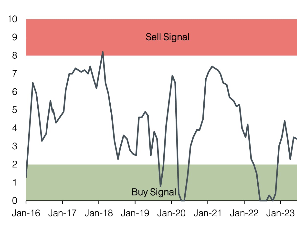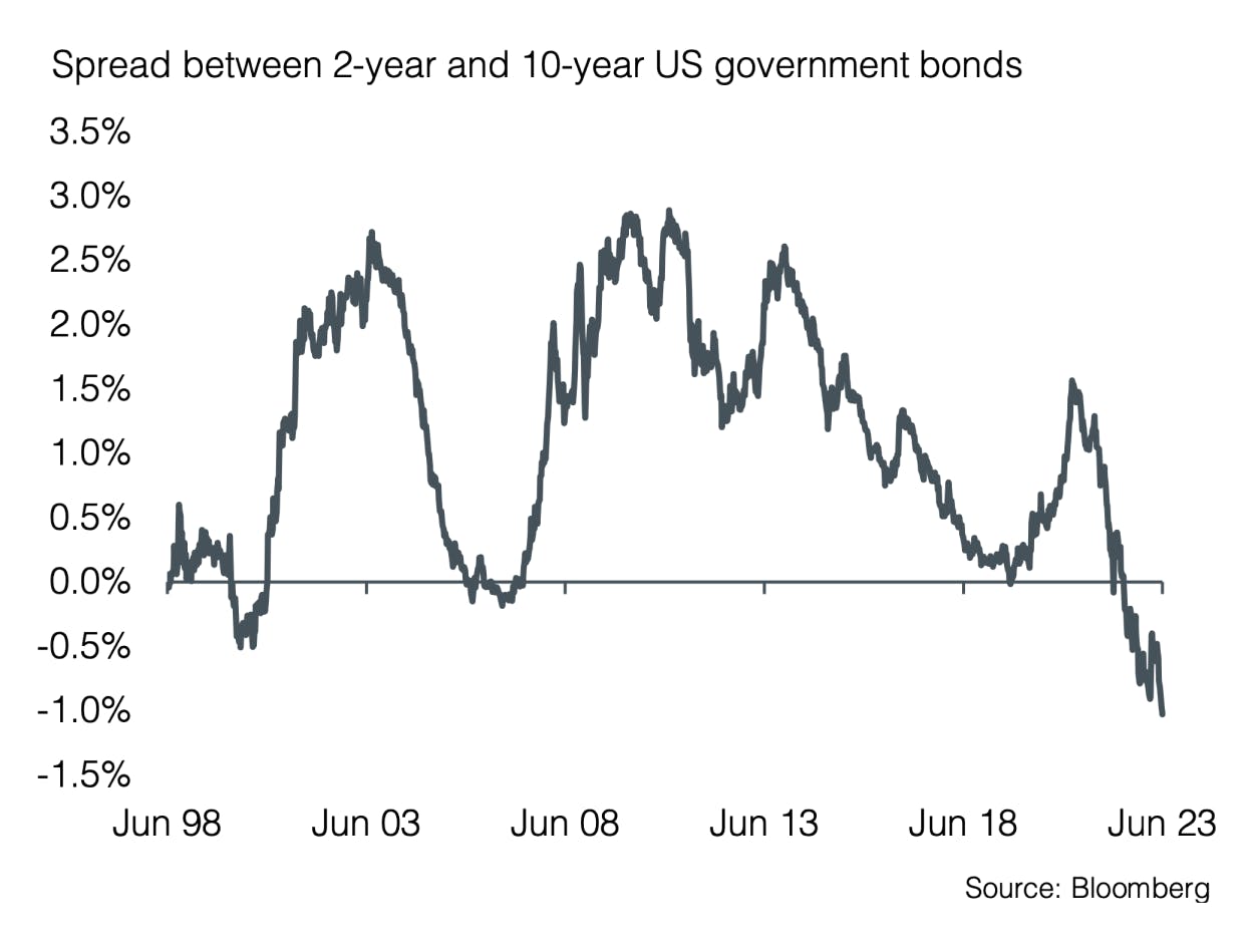 Professional investors were unequivocal in their opinions at the end of last year: the significant increase in interest rates would gradually impact the economy and trigger a recession going forward. Consequently, investors adopted a defensive stance in their portfolios. However, at the beginning of this year, global stock markets exhibited a robust recovery. Even disruptions in a fragile financial system, such as the collapse of three US regional banks and the UBS takeover of Credit Suisse, resulted in temporary losses only. Particularly, major US technology companies thrived as the conviction grew that they would benefit the most from the expanding significance of artificial intelligence. This stock market resurgence presented a challenge for many defensively positioned investors, forcing them to change their allocations. The decrease in cash holdings since the start of the year indicates an improved risk sentiment among investors. Additionally, the decline in inflation likely contributed to this positive shift. In the US, the headline inflation rate has dropped from its peak of 9.1% in June 2022 to 4%.