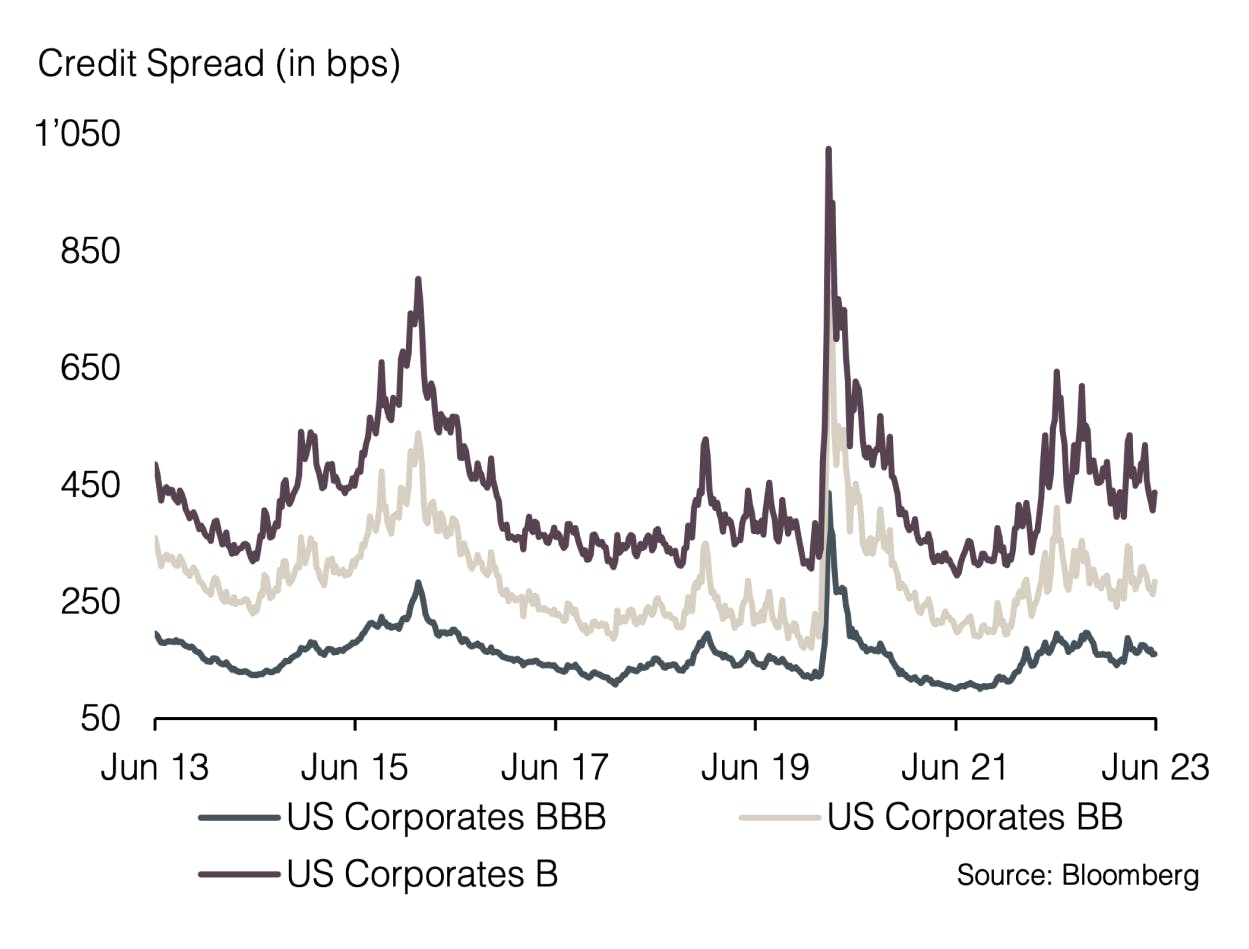 Therefore, we maintain a defensive positioning by slightly underweighting our equity allocation. We continue to implement this by underweighting US equities. As central bank-controlled interest rates approach their peak levels, our preference remains with long-term government bonds and high-quality corporate bonds. We continue to avoid high-yield bonds as price levels do not appear attractive after a significant spread tightening.