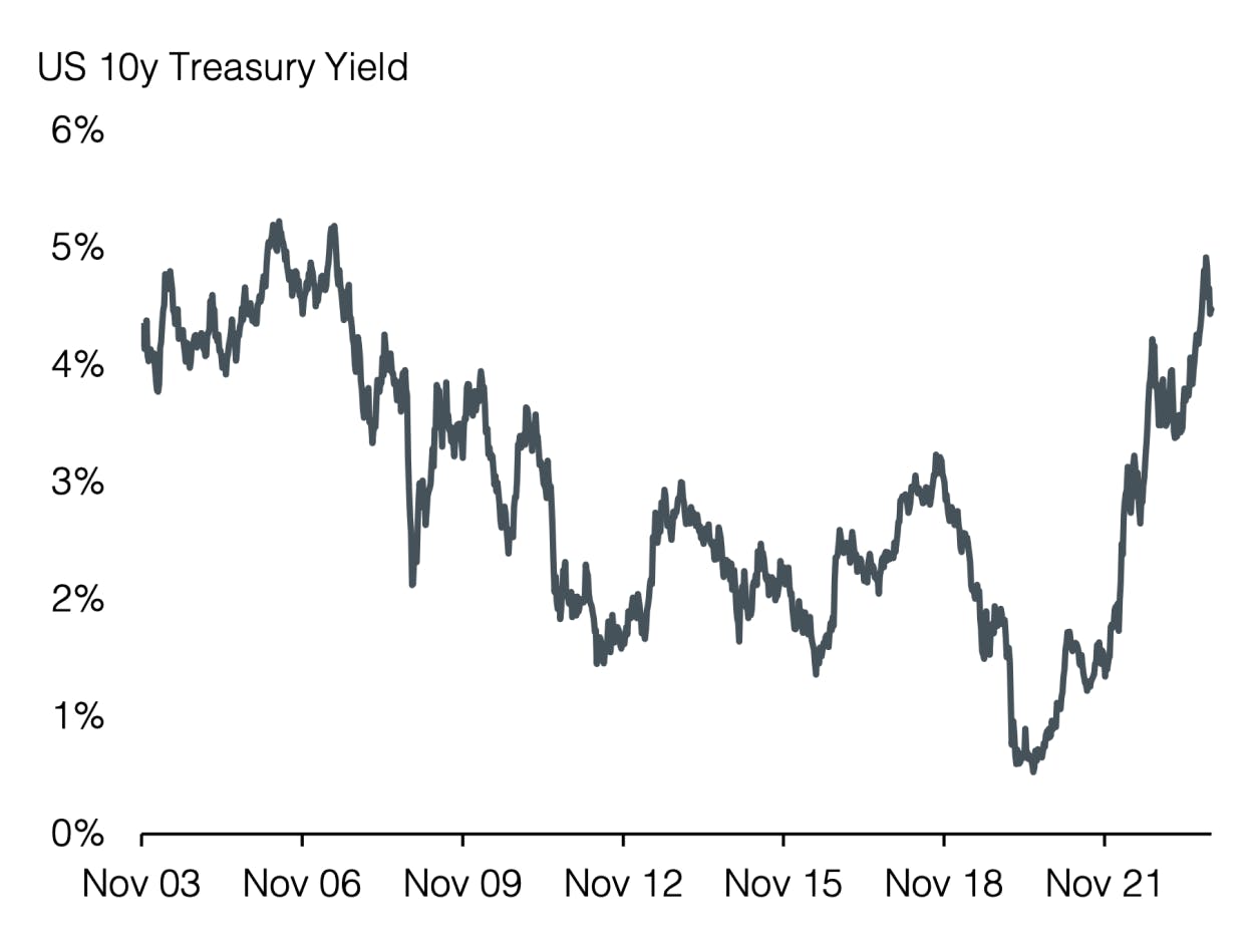 One of the most reliable economic leading indicators in the United States, the ISM Manufacturing Purchasing Managers' Index, fell to 46.7 points last month, significantly missing economists' expectations of 49 points. In addition to the purchasing manager report, the acceleration of unit labor costs, the creation of new jobs, as well as the change in durable goods orders, also missed the expectation of economists. As a result, the overall number of positive economic surprises in the U.S., one of the main reasons for continuously high interest rates, has been consistently declining since peaking back in July. The overall softening trend in the economy was confirmed by the latest release of inflation data, which continues to trend lower faster than expected.